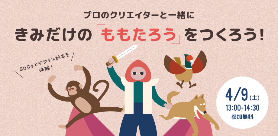 2022.03.25 お知らせ VIVISTOP NITOBE OpenDay |きみだけの「ももたろう」をつくろう! SDGsの考え方にふれながら、ストーリー展開をえらべるデジタル絵本「えらぶっく」を…